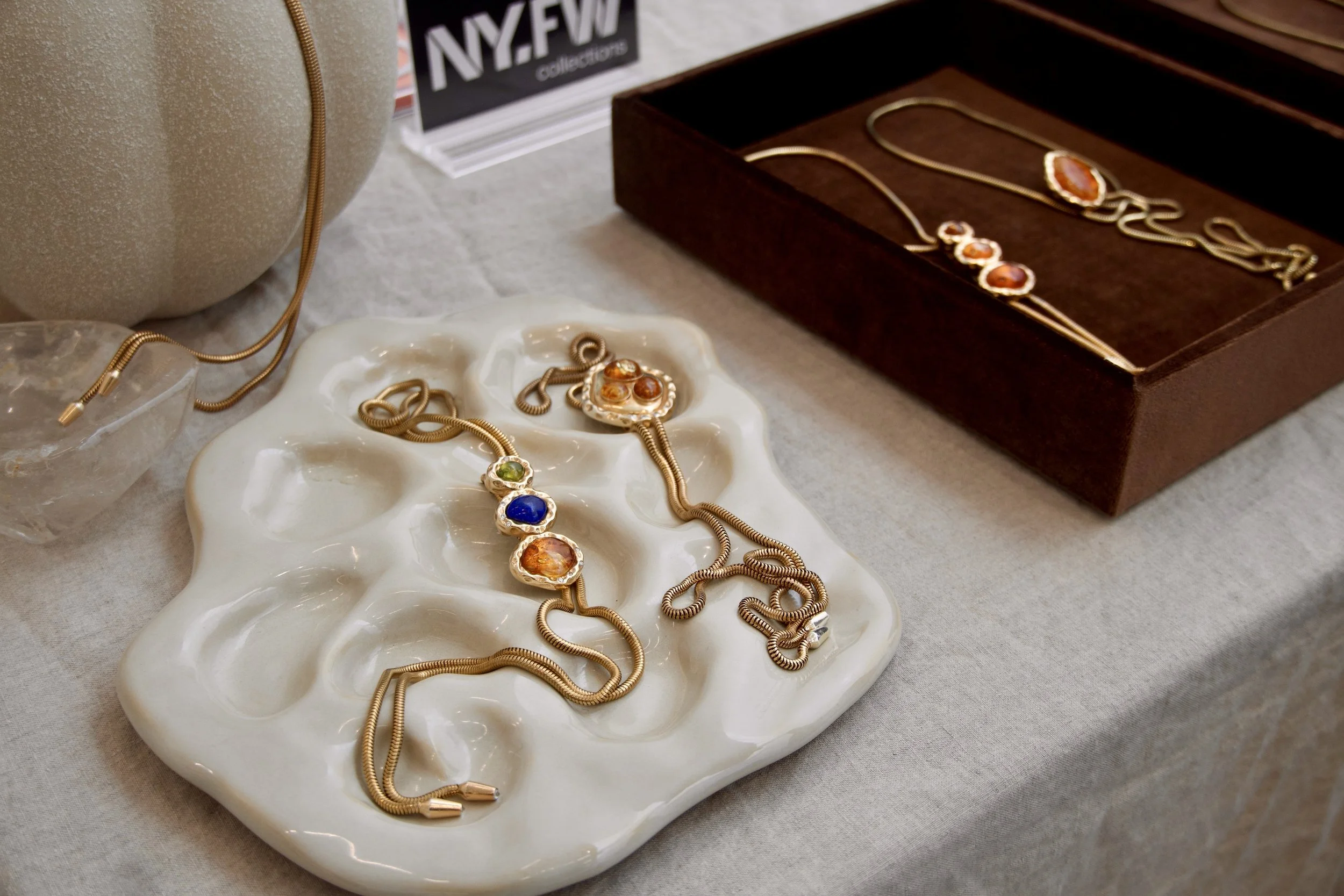 Bolo-tie inspired pieces featuring lapis, amber and diamonds by New York-based brand Bolola. From left: the Merriam, Joanna, Merriam (with amber) and Lola.